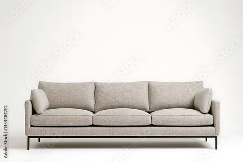 Modern beige sofa in neutral room, creating relaxing ambiance, perfect for interior design
