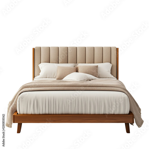 Modern Beige Upholstered Bed with Wooden Frame - Bedroom Furniture