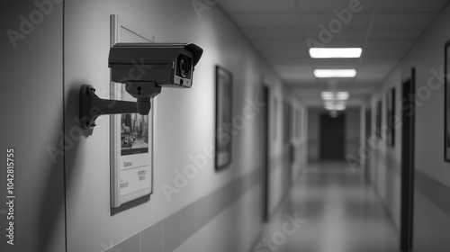 Modern Black and White CCTV Camera in Hallway