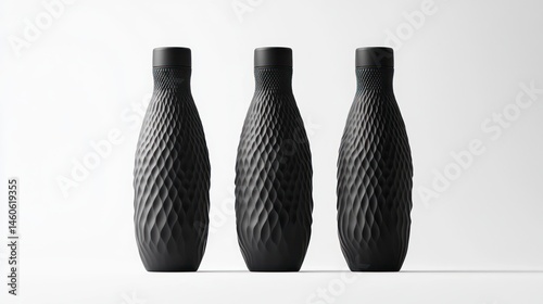 bottle, design, modern, black, texture, product, cardboard box, three-dimensional, rendering, studio, isolated, elegant, luxury, water, soda, smooth, geometric, rippled, faceted, contour, unique, shape, glasses, plastic, sustainable, eco, illustration, graphic, advertising, promotion, product, concept, image, presentation, industrial, manufacturing, material, innovation, textured, contemporary, minimalist, lifestyle, high-end, quality