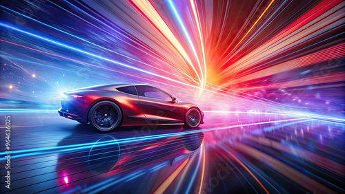 Modern car speed fast through highways with vibrant light trails and a sense of high-speed motion