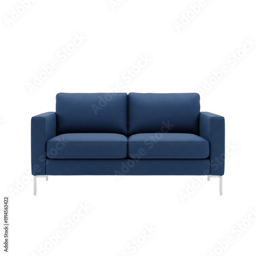 sofa, modern, blue, furniture, isolated, commercial, product, minimalist, geometric, studio, contemporary, seating, loveseat, design, white, background, fabric, textile, threaded, texture, cerulean, chrome, leg, upholstery, sharp, contour, streamlined, aesthetic, sleek, professional, high key, front view, static, seamless, pristine, negative, copy, space, catalog, clean, precise, definitive, clarity, quality, houseware, decor