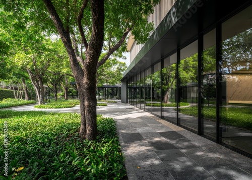 Modern cities now feature environmentally friendly buildings, including sustainable glass office buildings with carbon-reducing trees and offices that promote a green environment, all of which help