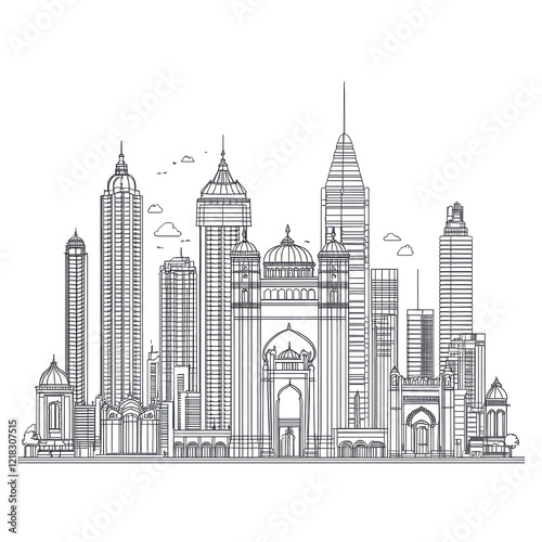 Modern City Skyline Architectural Sketch Black and White Design