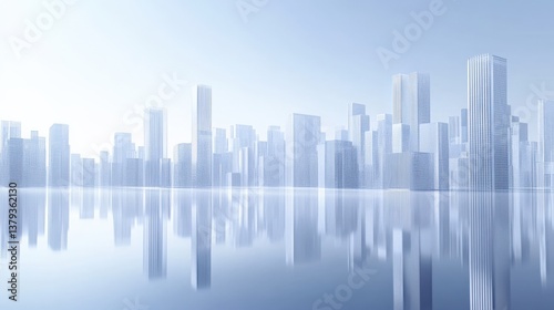 city, skyline, architecture, modern, building, mist, light, urban, landscape, skyscraper, perspective, digital, illustration, future, technology, design, ai, virtual, city landscape, horizon, water, mirror, image, art, graphic, view, morning, aesthetic, contemporary