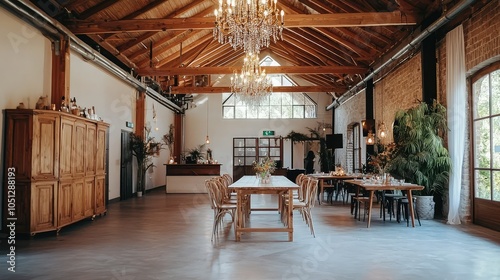 barn, roomy, modern, event, venue, interior, design, decor, chandelier, wood, seating, table, lighting, plant, rustic, elegance, renovation, architecture, celebration, gathering, atmosphere, open, airy, window, comfortable, stylish, versatile, charme, aesthetic, hospitality, space, feature, natural, bright, trendy, unique, setting, location, sophisticated, clean, professional, function, arrangement, layout, beauty