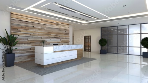 Modern Corporate Office Lobby with Elegant Marble Reception Desk