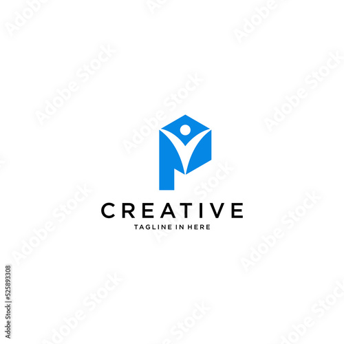 Modern creative vector logo design with abstract letter P, human figure and body elements, symbolizing health, fitness, wellness, lifestyle, community, and business success.