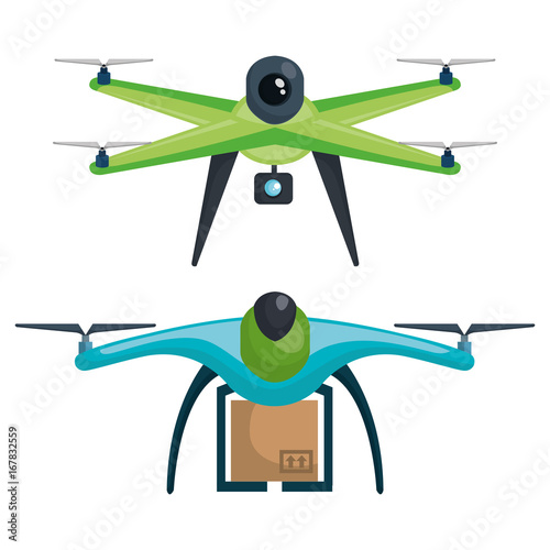 modern, delivery, package, flying, drone, vector, illustration, aircraft, box, camera, chopper, control, editable, enforcement, flight, fly, hover, law, lift, mail, mechanical, panoramic, parcel, photo