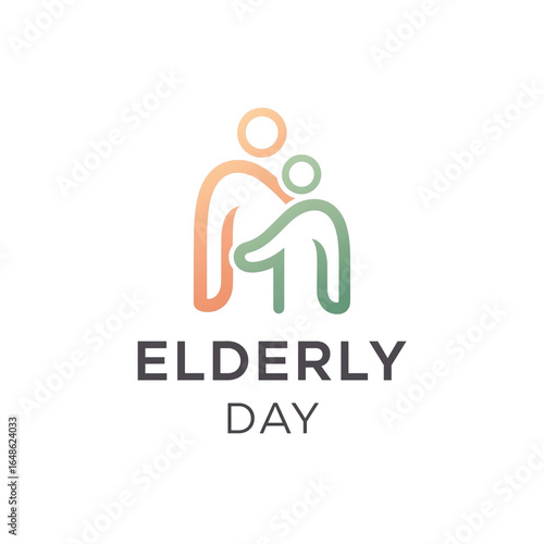 Modern Elderly Day logo: Minimalist lines forming figures embracing, symbolizing support and intergenerational connection.