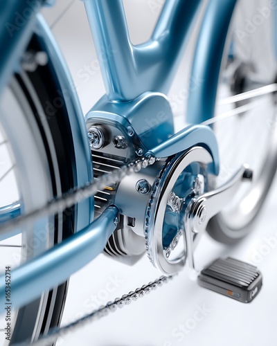 electric bicycle, bicycle, bike, commuting, transportation, environmentally friendly, sustainable, technology, modern, design, detail, closeup, chain, gear, motor, pedal, chrome, blue, clean, urban, lifestyle, travel, cycling, ride, energy, power, innovation, vehicle, wheel, environmentally friendly, healthy, active, gear, battery, futuristic, transport, mobility, city, outdoors