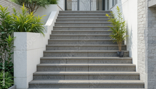 stair, step, architecture, modern, building, white, grey, concrete, plant, window, minimalist, exterior, design, simple, clean, light, modern architecture, urban, city, contemporary, landscape, white building, modern building, building exterior, whitewall, modern style