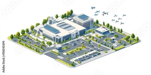 facility, design, solar, panel, landscaping, parking, sustainability, technology, architecture, modern, greenery, environment, building, innovation, urban, transportation, clean, energy, operation, logistic, aerial, infrastructure, development, future, industry, service, community, mobility, equipment, deployment, efficiency, management, storage, surveillance, connectivity, automation, region, space, planning, layout, aesthetic