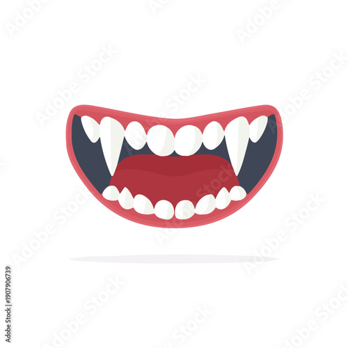 Modern flat 2D vector illustration of Vampire Teeth, clean and minimal design, isolated on white background.