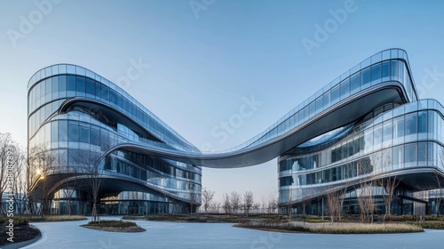building, office, modern, glasses, architecture, sunrise, urban, landscape, design, contemporary, structure, corporate, business, exterior, facades, sky, city, development, commercial, professional, real estate, property, park, piazza, ground, technology, innovation, future, success, growth, ambition, progress, elegant, sophisticated, luxury, prestige, efficient, sustainable, roomy, panoramic, view, horizon, dawn