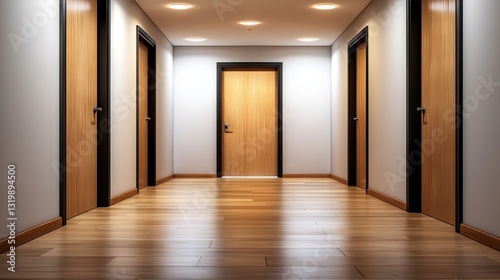 Modern Hallway Interior with Wooden Doors and Sleek Flooring