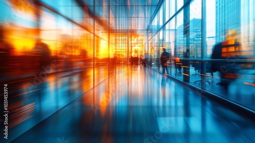 Modern hallway with blurred motion and beautiful sunset lighting