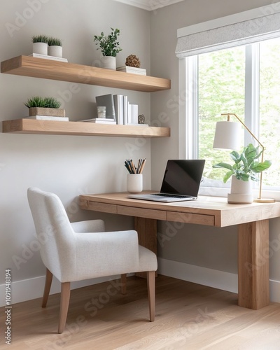 Modern Home Office with a Minimalist Desk, Organized Space, and Elegant Details