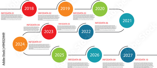 Modern Horizontal Timeline Infographic Template with Year Milestones and Process Steps