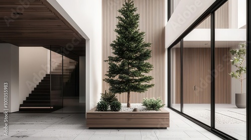 tree, decorate, house, indoor, relaxation, grow, modern, courtyard, tall, pine, tree, evergreen, serenity, design, architecture, structure, beauty, layout, family, vista, wellness, feature, quality, habitat, scenery, comfort, openness, luxury, ambience, sunlight, balance, retreat, artistry, aesthetic, privacy