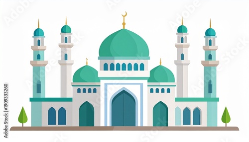 mosque, islamic, architecture, religion, green, dome, minaret, building, vector, illustration, design, culture, tradition, white, modern, islam, arabic, middle east, prayer, faith, spirituality, symbol, landmark, travel, tour tourism, background, pattern, decorative, art, graphic, peaceful, serene, colourful, vibrant, elegant, detailed, geometric, arab, muslim, worship, sacred, holy, temple, skyline, city landscape, outline, flat, simple, clean
