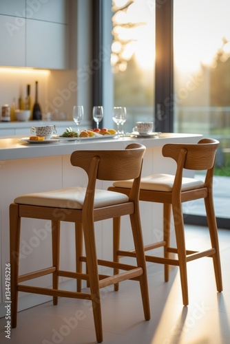 Modern kitchen island barstools, sunny morning
