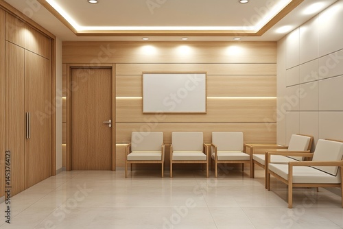 waiting, room, modern, light, wood, paneling, seating, comfortable, chair, beige, empty, blank, frame, hospital, clinic, medicals, clean, interior, design, contemporary, roomy, formal, neutral, warm, flooring, tile, door, panel, office, reception, simple, professional, cleanliness, bright, welcoming, furnished, functional, architecture, quiet