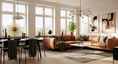 living room, interior, modern, sofa, leather, sunlight, natural light, home, design, contemporary, decor, furniture, elegance, roomy, bright, window, art, abstract, coffee table, rug, dining table, chair, plant, globe, lamp, chandelier, stylish, sophisticated, upscale, minimalist, comfortable, cosy, domestic, real estate, architecture, apartment, luxury, row house, urban, interior design, residential, elegant, clean, airy, inviting, aesthetic