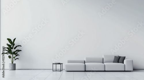 Modern living room with plant and sofa