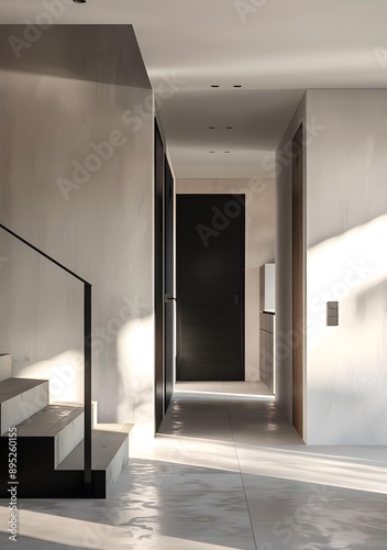 Modern Minimalist Hallway Interior Design with Stairs and Light