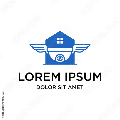 camera, house, wing, security, logotype, home, surveillance, protection, monitoring, system, property, safety, building, real estate, residential, modern, minimalist, design, graphic, illustration, icon, symbol, element, concept, abstract, creative, technology, digital, guardian, alert, vigilance, secure, private, apartment, estate, safeguard, residence, blue, shape, signs, emblem, corporate, identity, branding, company, business, service, flat, graphic design
