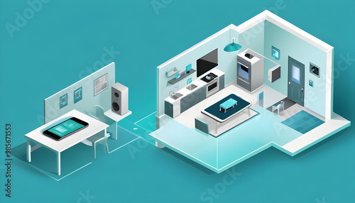 modern minimalist isometric smart home connected electronic
