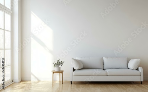 living room, interior, design, minimalism, modern, sofa, furniture, plant, window, wall, light, empty, room, space, decor, home, white, wooden, simple, clean, minimalist, comfortable, cosy, rendering, three-dimensional