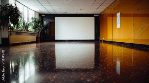 Modern Minimalist Office Interior Design Blank Wall Plants Polished Floor