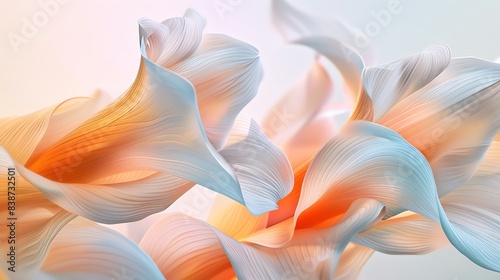 modern, minimalistic art style, silk lily petal wallpaper, light color, see-through, soft light, flowing see-through, precise hyperrealism, mesmerizing color scape, octane