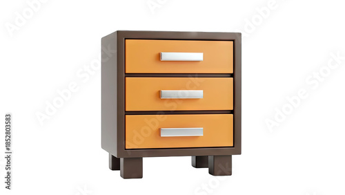 nightstand, orange, isolated, modern, drawer, furniture, cabinet, white background, bedchamber, design, interior, wooden, storage, decor, home, contemporary, style, minimal, object, chest, bedside table, empty, clean, simple, brown, handle, knob, three, closeup, studio shot, domestic, apartment, living