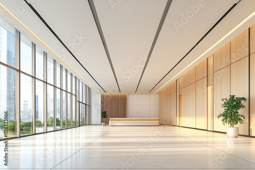 office, interior, modern, design, wooden, space, bright, minimalist, reception, plant, contemporary, architecture, corporate, empty, clean, professional, lighting, urban, flooring, wall, furniture, open, roomy, elegant, stylish, city, view, natural, aesthetic