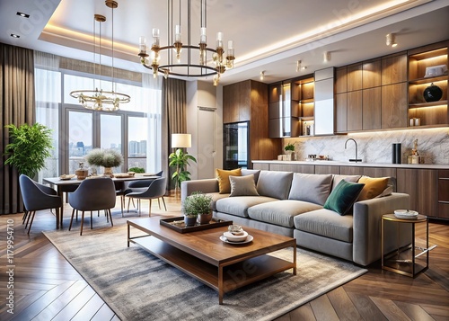 Modern Open Plan Luxury Apartment Interior Design Stock Photo