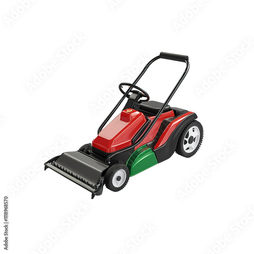 Modern Red and Green Cylinder Lawn Mower Isolated on White Background