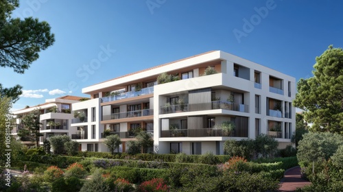 building, modern, residential, architecture, elevation, design, construction, nature, greenery, facades, landscape, urban, contemporary, flat, apartment, space, structure, environment, creative, housing, community, city, style, home, garden, scenery, aesthetic, sunlight, clear, blue, sky, layout, tranquil, unique, colours, detail, exterior, harmony, view, serenity, residential area, real estate