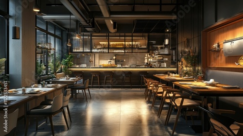 eatery, interior, dining, kitchen, furniture, decor, lighting, plant, atmosphere, modern, design, space, seating, ambience, culinary, tableware, utensil, glassware, counter, bar, menu, service, comfort, elegance, warmth, hospitality, food, beverage, preparation, chef, client, life events, style, urban, contemporary, social, gathering, meal, cookery, layout, aesthetic, creativity, worked, art, colours, arrangement, texture, environment, community