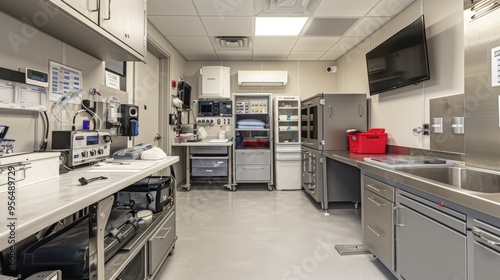 Modern, sterile medical laboratory with advanced equipment and organized workspace for healthcare research and diagnostics.