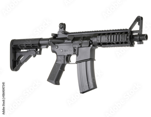 Modern tactical equipment with adjustable stock and rails for modular accessories