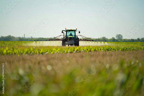 Modern Tractor Spraying Agricultural Field for Efficient Crop Protection and Growth
