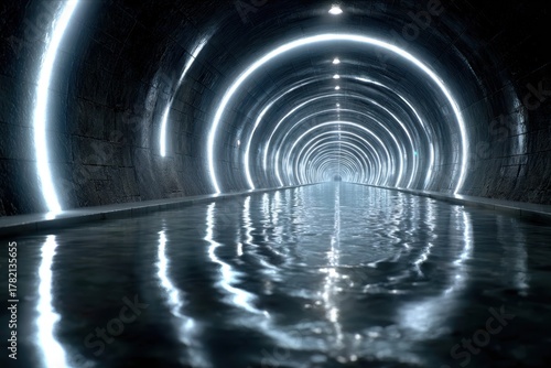 tunnel, water, light, modern, architecture, underground, illumination, design, symmetry, circular, pathway, urban, structure, environment, engineering, dark, serene, calm, innovative, depth, waterway, night, transport, passage, scenery, linear, reflective, aesthetic, creativity, exploration, travel, calmness, light, source, ambience, city landscape, futuristic, movement, perspective, perception, atmospheric, visual, art, minimalism