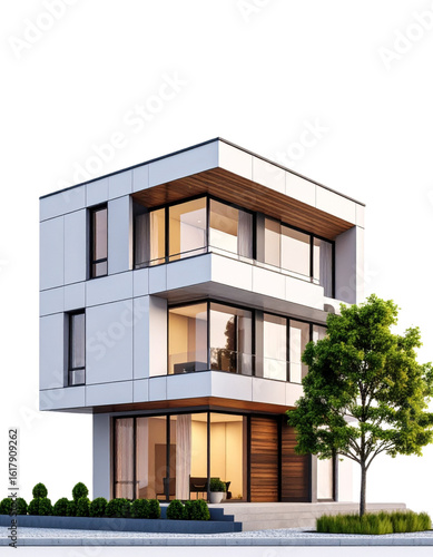 Modern urban architecture is characterized by urban residential buildings with green windows.