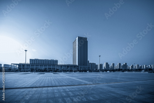 city landscape, skyscraper, modern architecture, city skyline, open space, sunlight, symmetry, emptiness, city life, perspective, calmness, real estate, daylight, blue skies, landscape design, modernism, shadow