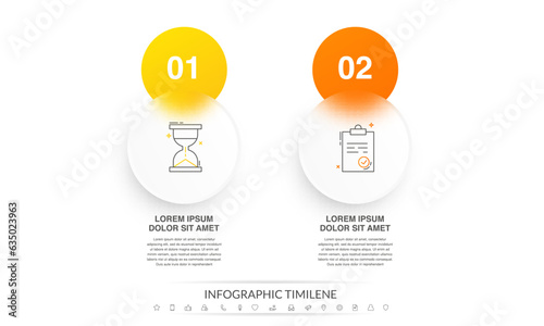 Modern vector minimalist infographic template composed of 2 circles and steps. Business design with marketing icons for two options