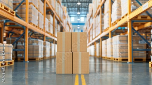 Modern wharf, stockroom filled with neatly organized goods, showcasing the efficient storage and handling of shipments at a busy seaport