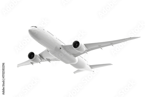 Modern White Commercial Passenger Jet Airplane in Flight Ascending with Clear Sky Background and High Detail PNG No Background